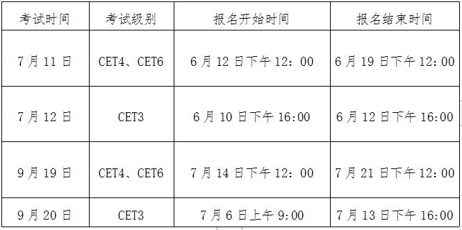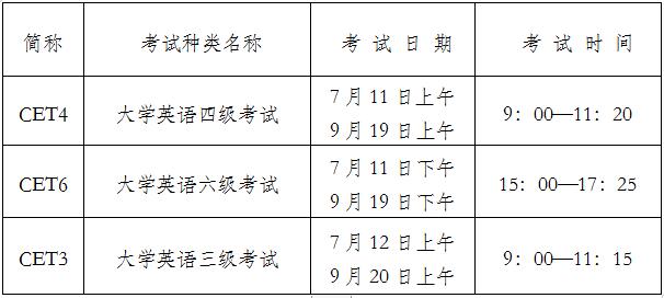 根据教育部考试中心《关于2020年上半年全国大学英语四、六级考试延期举行的公告》和高等学校英语应用能力考试委员会通知精神,原定于2020年6月13日-14日举行的浙江省大学外语等级考试,分别延期至7月11日-12日(7月份考试)和9月19日-20日(9月份考试)举行,原定于2020年6月14日举行的高等学校英语应用能力B级考试取消。7月份考试的报名对象是2020届毕业生,9月份考试的报名对象是本校全日制注册在校生。现将有关情况通知如下: