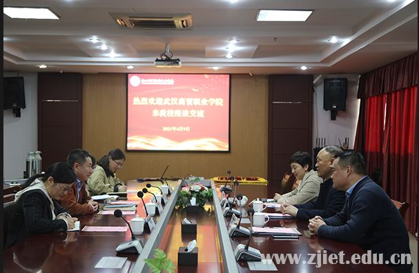 4月9日,武汉商贸职业学院党委书记丁振国、副校长吴争强、招生就业处副处长曾志华等一行3人来我校考察交流。学校党委书记劳赐铭、副校长张红与招生就业处、创业学院相关人员热情接待了来访客人。