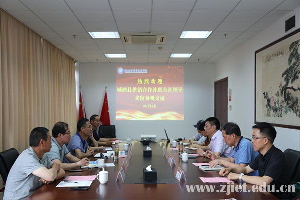 6月10日,嵊泗县供销合作社联合社党委书记、理事会主任全国华等一行5人来我校考察交流。学校校长陈德泉热情接待了来访客人,科研处、继续教育学院、信息技术学院、应用工程学院等部门负责人参加座谈。