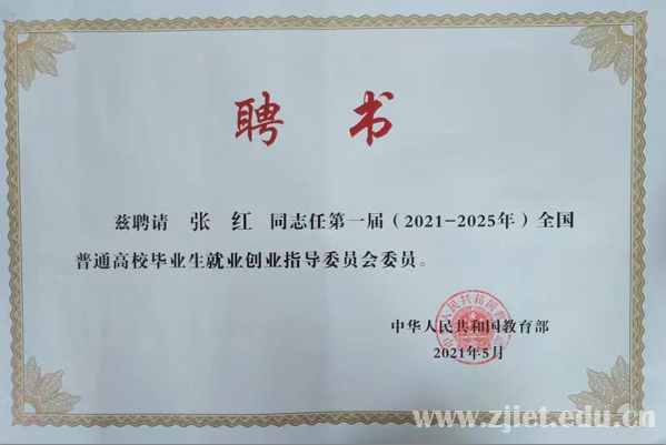 张红副校长受聘教育部首届全国普通高校毕业生就业创业指导委员会委员
