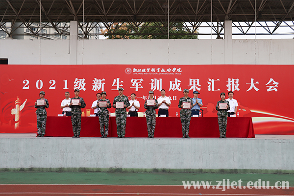 范成亮宣读了《关于表彰2021级学生军训先进集体和先进个人的决定》,与会领导为受表彰的先进集体和优秀个人代表颁奖。