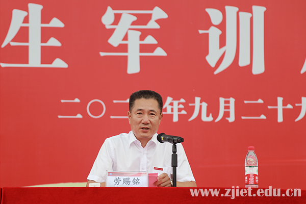 最后,劳赐铭作军训总结讲话。他首先代表学校党委对94973部队对本次军训的精心指导表示由衷的感谢,对本次军训付出辛勤汗水的教官致以崇高的敬意,对新生们在军训中取得的优异成绩表示热烈的祝贺。劳赐铭向全体新生提出三点希望:希望大家志存高远,勇担时代使命;希望大家心有所信,不断锤炼作为;希望大家立德修身,绽放青春之花,只争朝夕,不负韶华,努力开创光辉灿烂的美好未来!