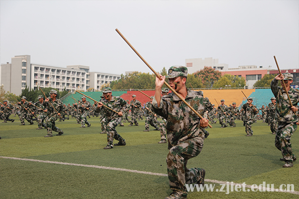 热血练兵展英姿,青春芳华铸军魂,军事技能综合方阵在激昂的音乐中依次登场。教官军事技能示范,招式干脆利落,尽显万丈豪情;战术方阵,士气恢宏、刚劲雄浑;格斗术综合方阵,整齐划一、虎虎生威;棍术方阵,一招一式、势如破竹;匕首操方阵,英姿飒爽、突显巾帼风采;旗语方阵,刚劲有力、挥动梦想。团体操方阵依次摆出“天安门”“1921”“2021”“强国有我”等字样,为建党100周年献上最美的祝福。最后,全体受训学生高唱《强军战歌》,将军训成果汇报大会推向了高潮。