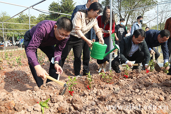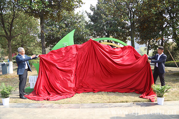 何学军和金汶斌为学校“五彩茶园”揭牌,描绘了建设产教融合共同体、创建绿色学校的美好画卷。