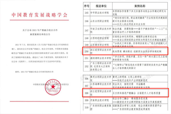 喜报:学校2个案例成功入选2021年教育部产教融合校企合作典型案例